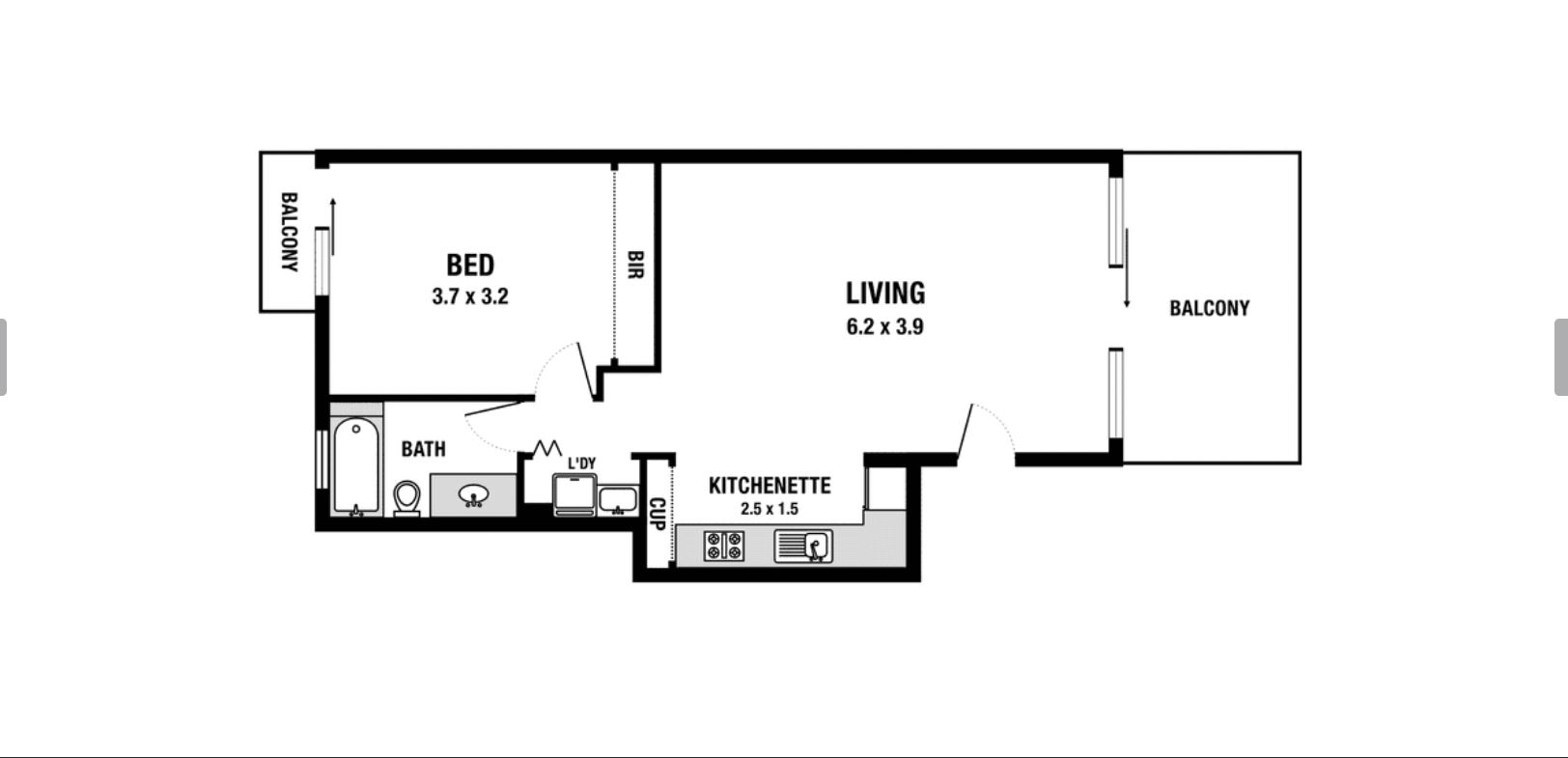 1间卧室 · 1间浴室 · 1个车位